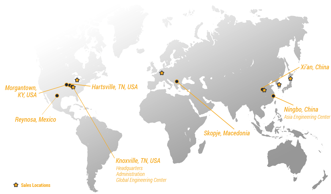Headquartered in Knoxville, TN with inflator manufacturing facilities located in each region.